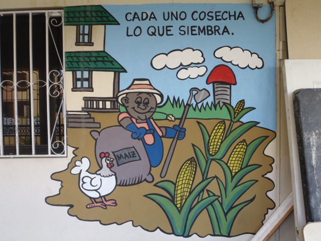 The neglected emblem of CEPBIEN (CEntro Psicopedagogico BIlingue ENmanuel) greets visitors at the carport entrance to my apartment building. The school has moved to a newer building across the street. |